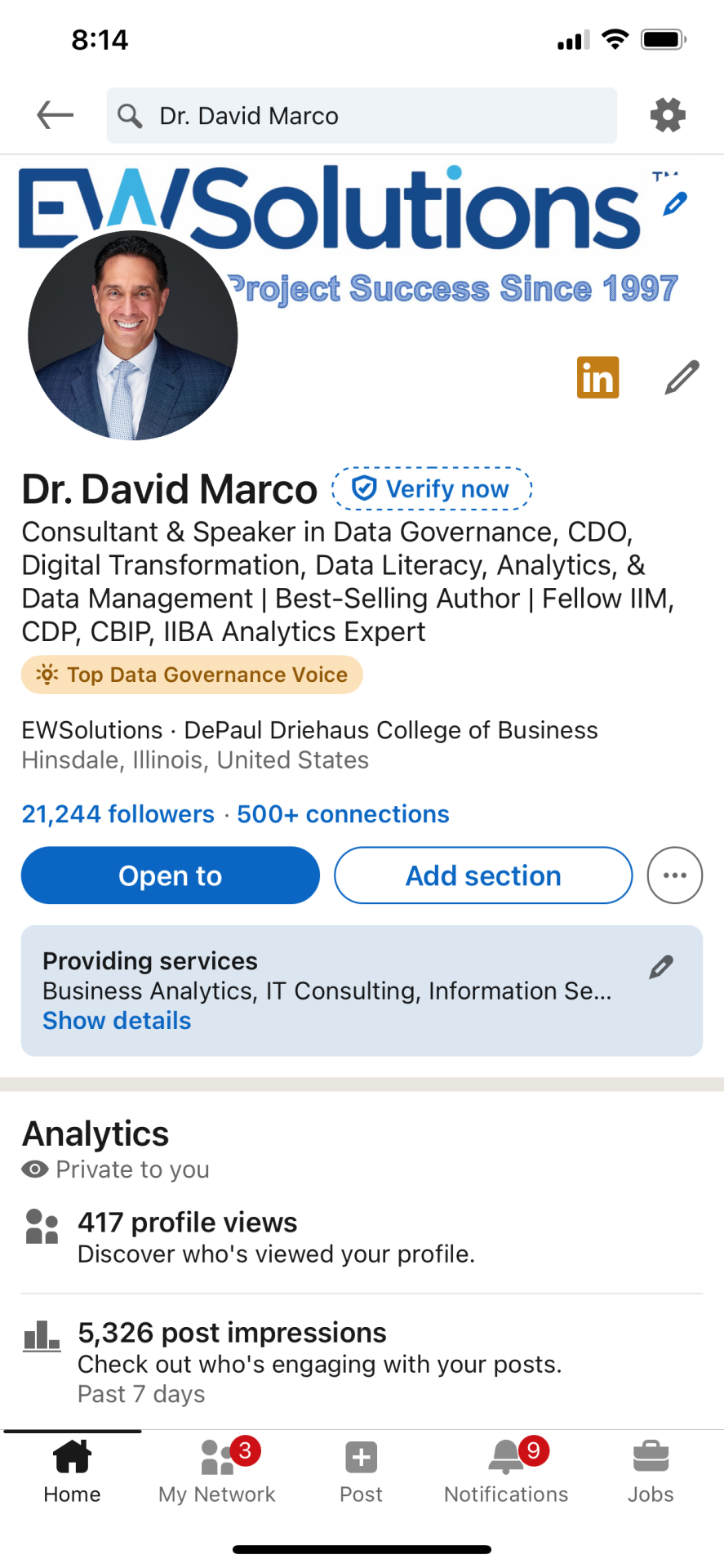 Best known as the world’s foremost authority on data governance and metadata management, Dr. David Marco is an internationally recognized expert in the fields of data management, AI governance, advanced analytics, data warehouse, business intelligence, data literacy and data stewardship. In 2004 Dr. David Marco was named the “Melvil Dewey of Metadata” by Crain’s Chicago Business as he was selected to their very prestigious “Top 40 Under 40” list. He followed up this honor in 2007 by being named one of DePaul University’s “Top 14 Alumni Under 40”. In 2020, he was awarded the title of Professional Fellow from the Institute of Information Management (their highest honor). In 2022, CDO Magazine named Dr. Marco one of the top data management consultants in North America. Dr. Marco is the author of the widely acclaimed, top-selling books “Universal Meta Data Models” and “Building and Managing the Meta Data Repository” which were translated into Mandarin (Chinese). In addition, he is a coauthor of “Impossible Data Warehouse Situations and Solutions From The Experts” and “Data Resource Management”. Dr. Marco has published hundreds of articles, some of which have been translated into Mandarin, Russian, Portuguese, and others.