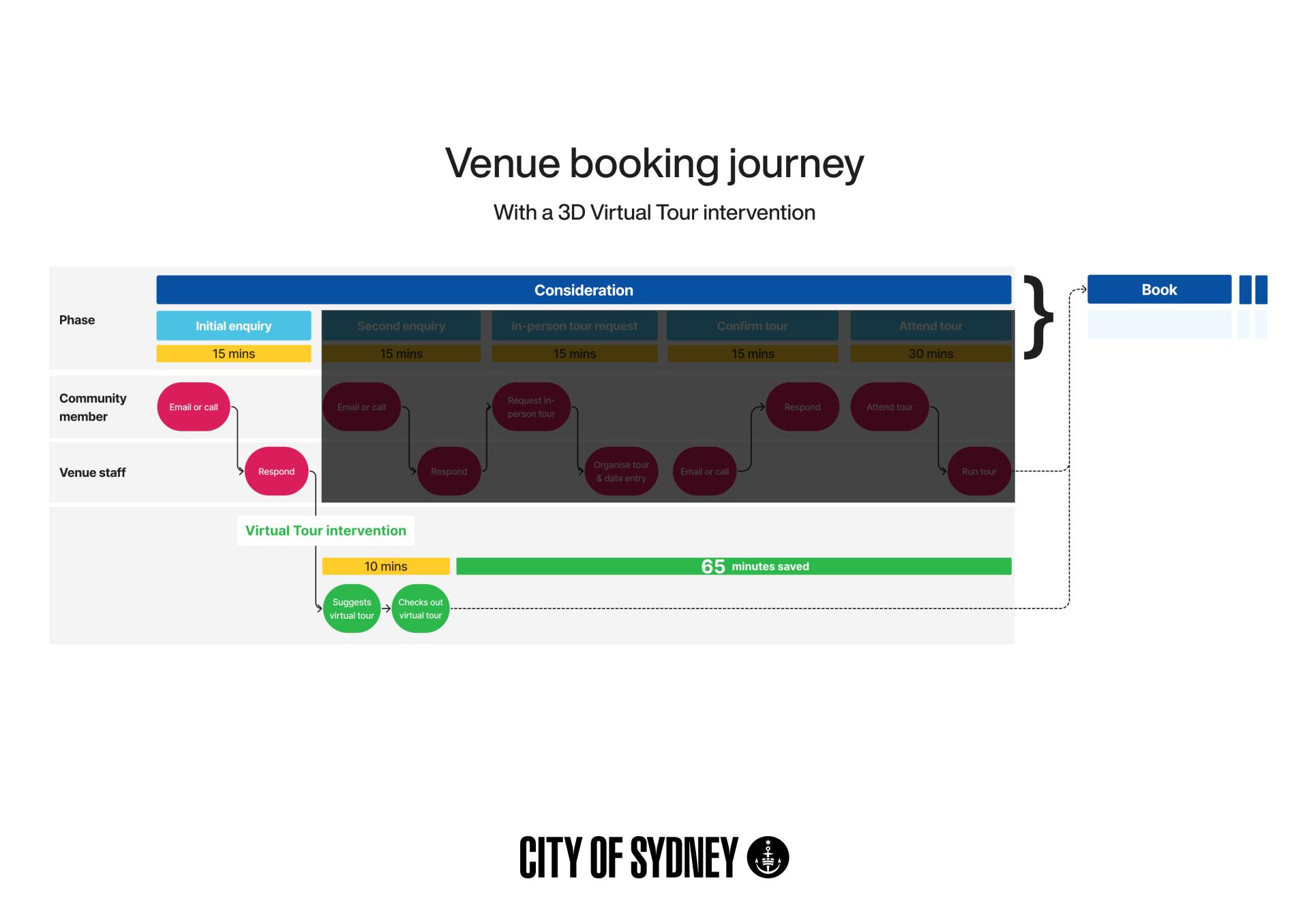 City of Sydney’s 3D Virtual Tours re-imagines how our community books local venues. The City looks after 38 community facilities comprising 81 individual spaces worth $40 million. Every year thousands of enquiries hit a small venues team, and a single in-person inspection can swallow around 60 minutes of back-and-forth and onsite time.